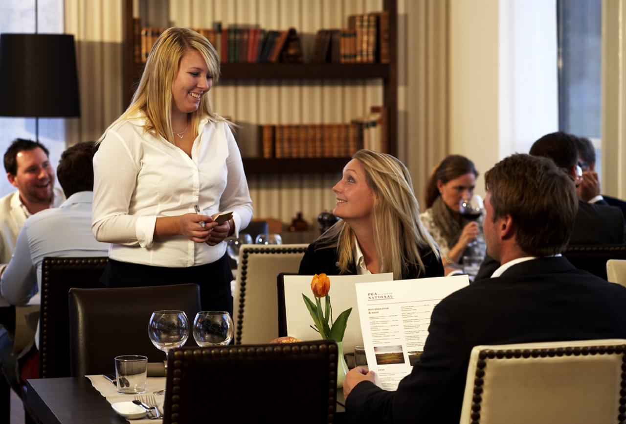 I den hyggelige restauranten kan du spise frokost, lunsj og middag. Uansett om du ønsker å spille før eller etter måltidet, vil personalet imøtekomme dine behov og servere retter laget med omsorg og med sesongens beste råvarer. Tillater været det, kan du nyte mat og drikke ute på den store terrassen.